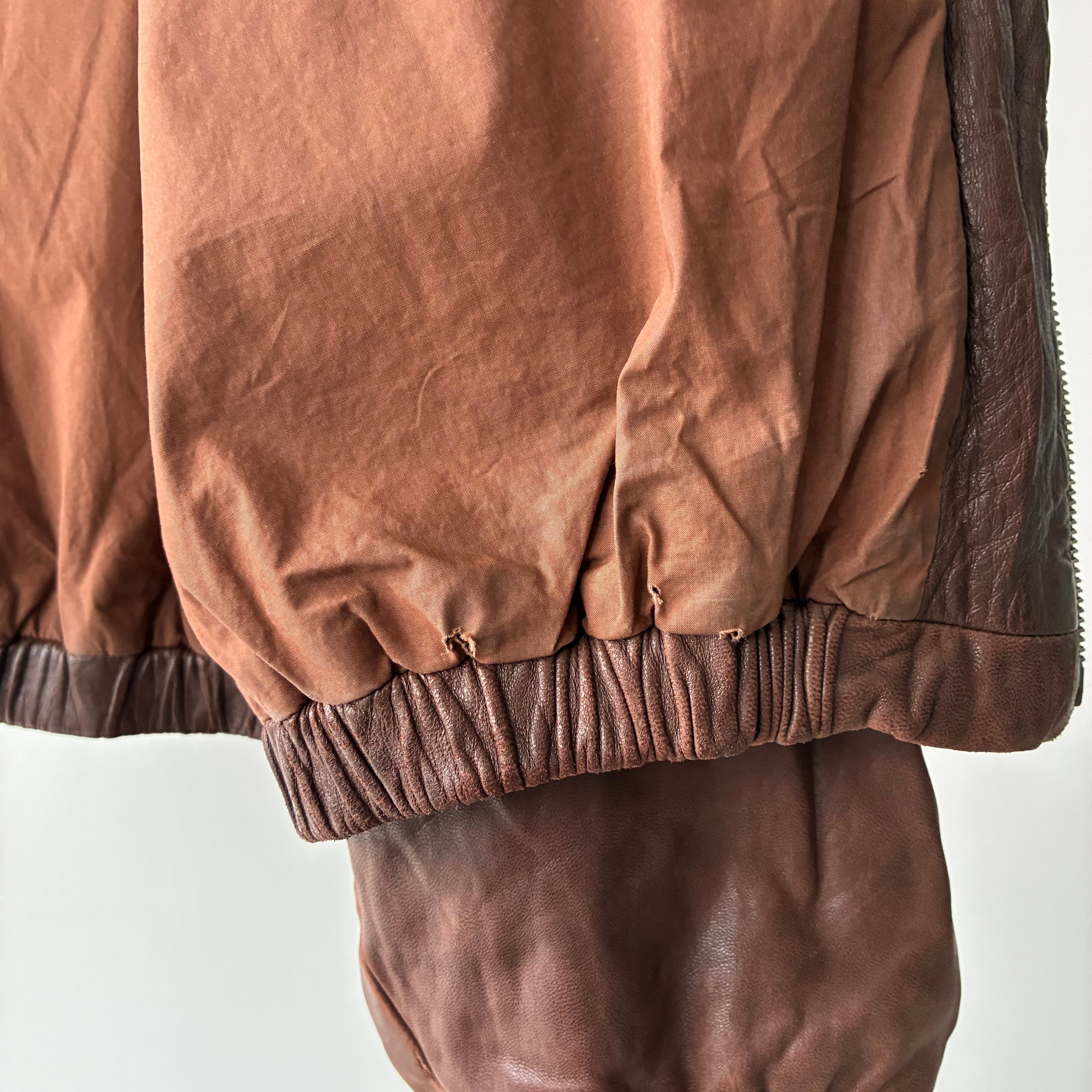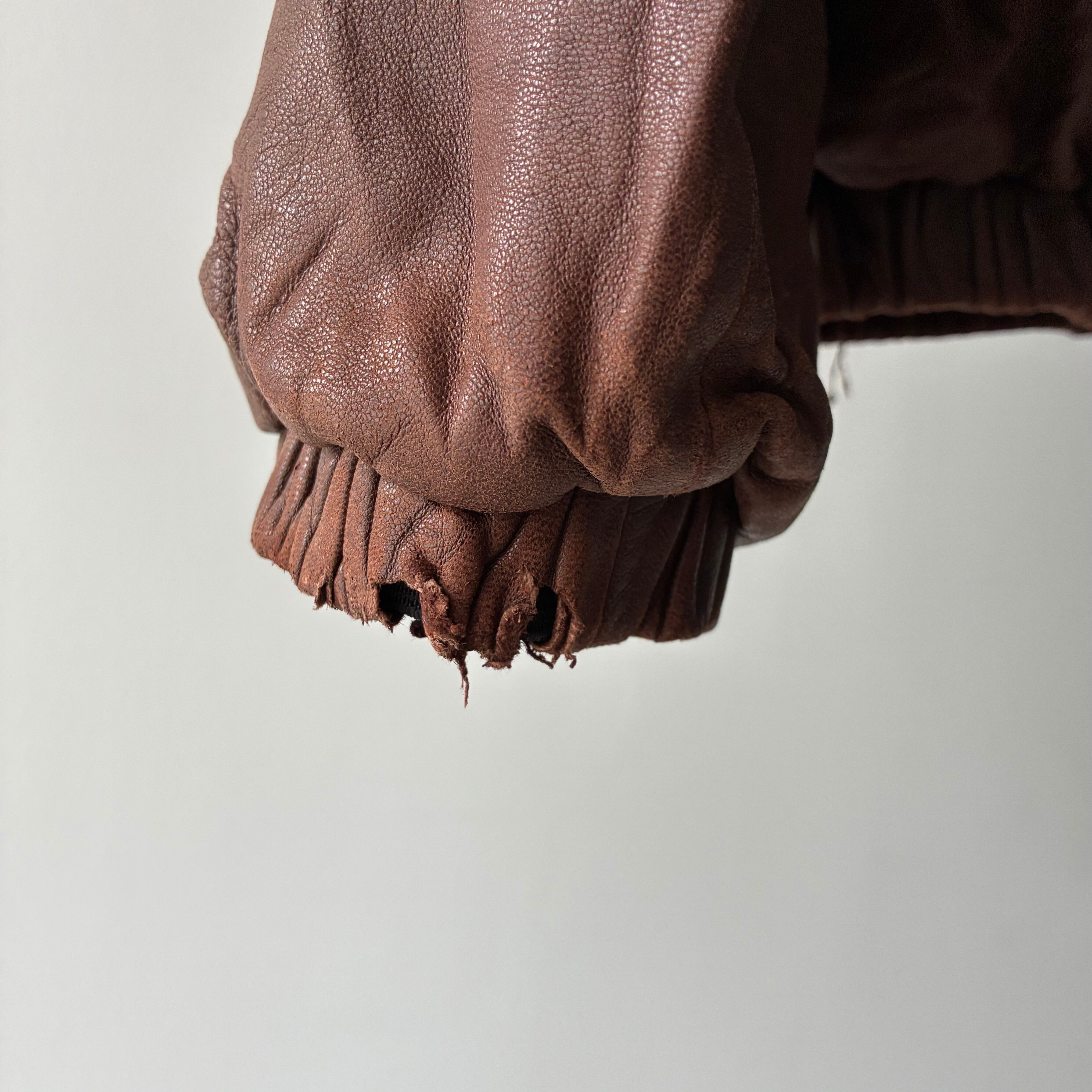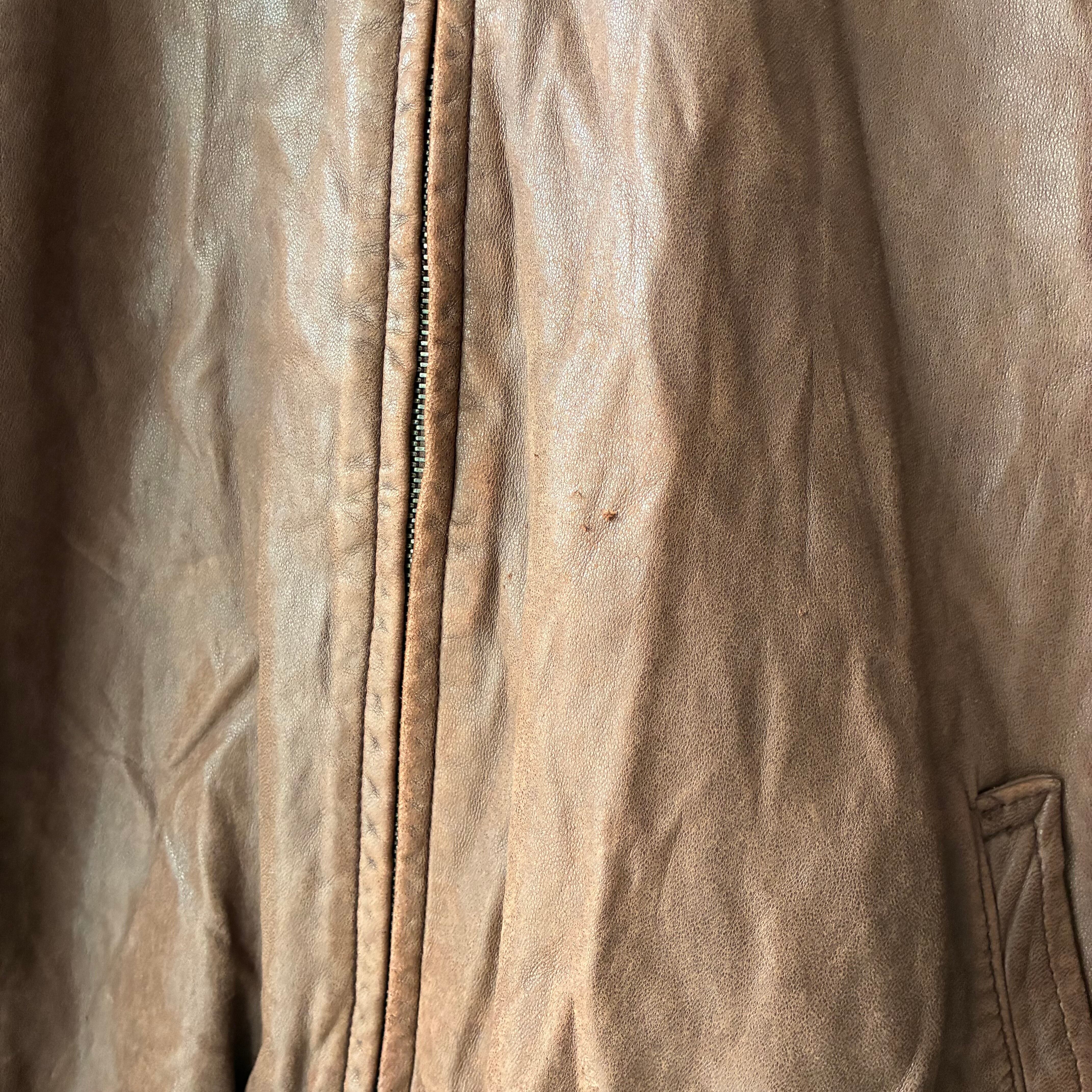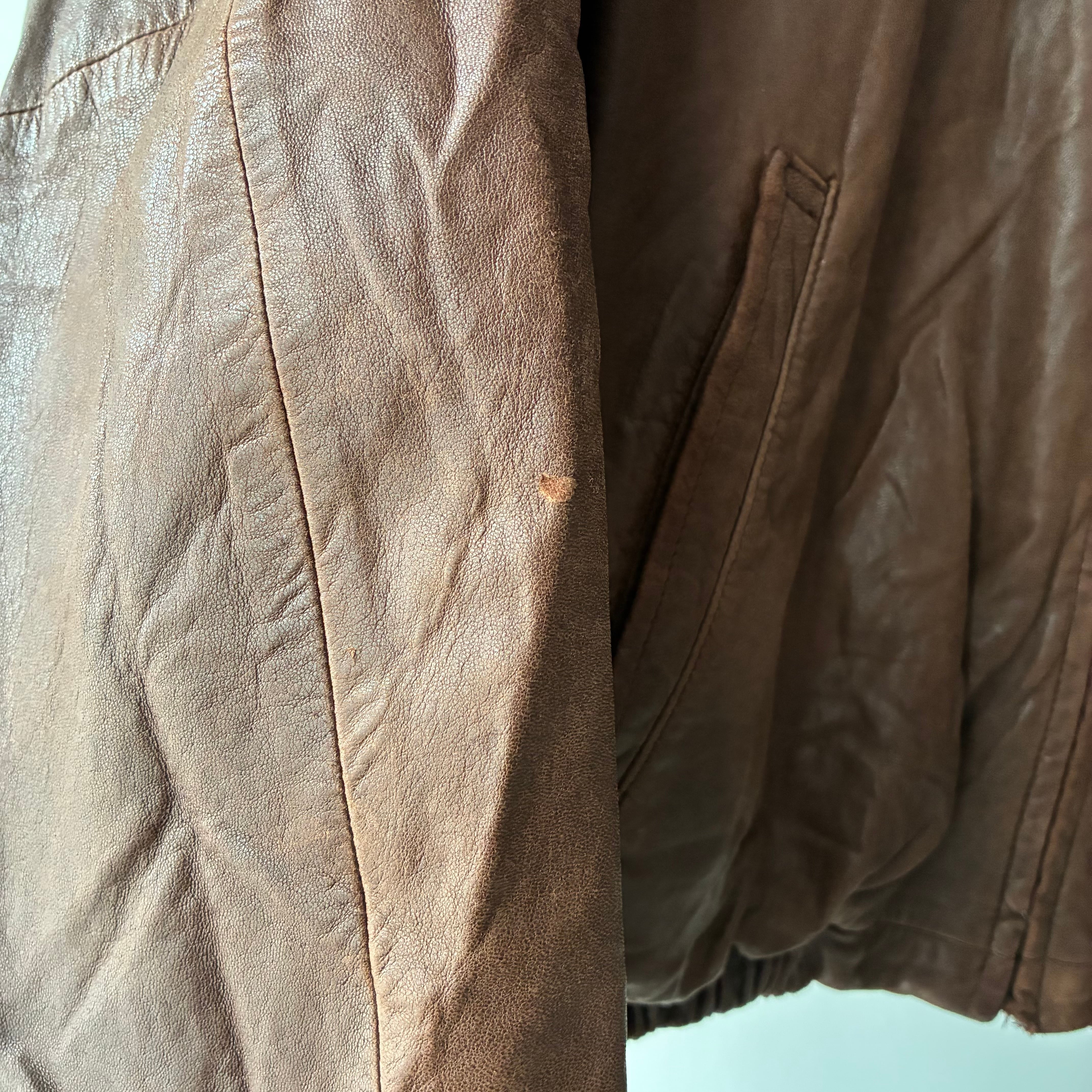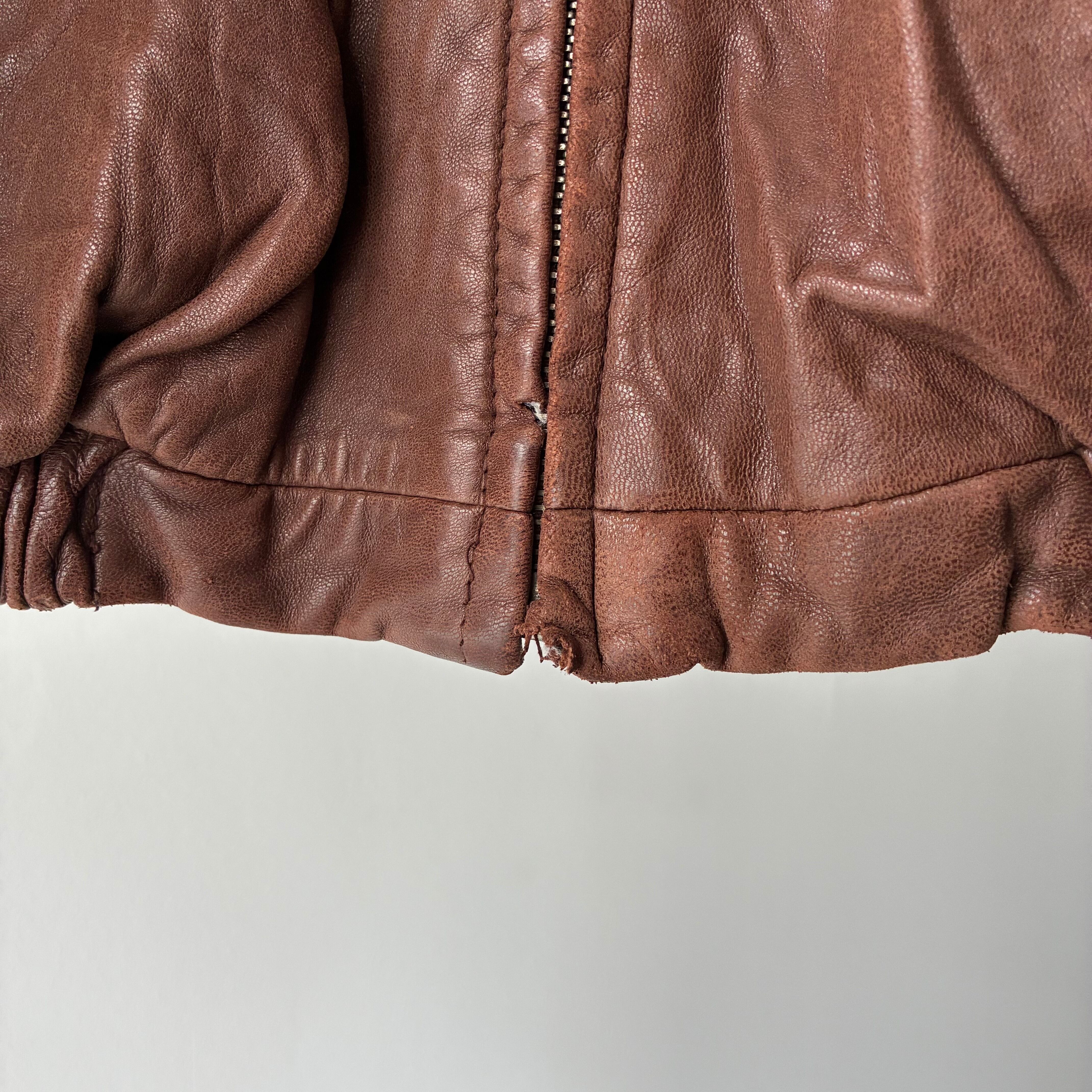 袖リブ・フロントジッパー下部付近のレザー部分にダメージ