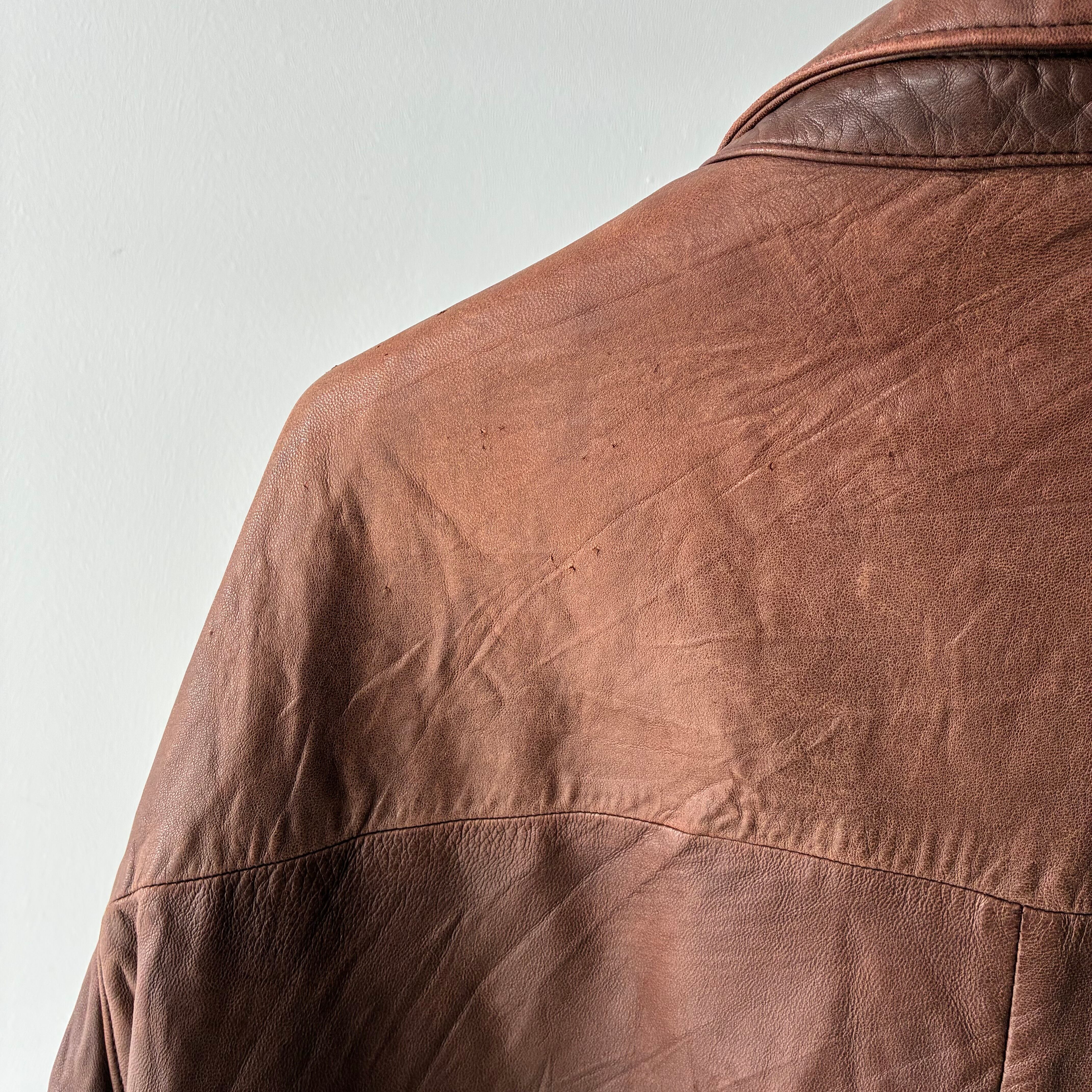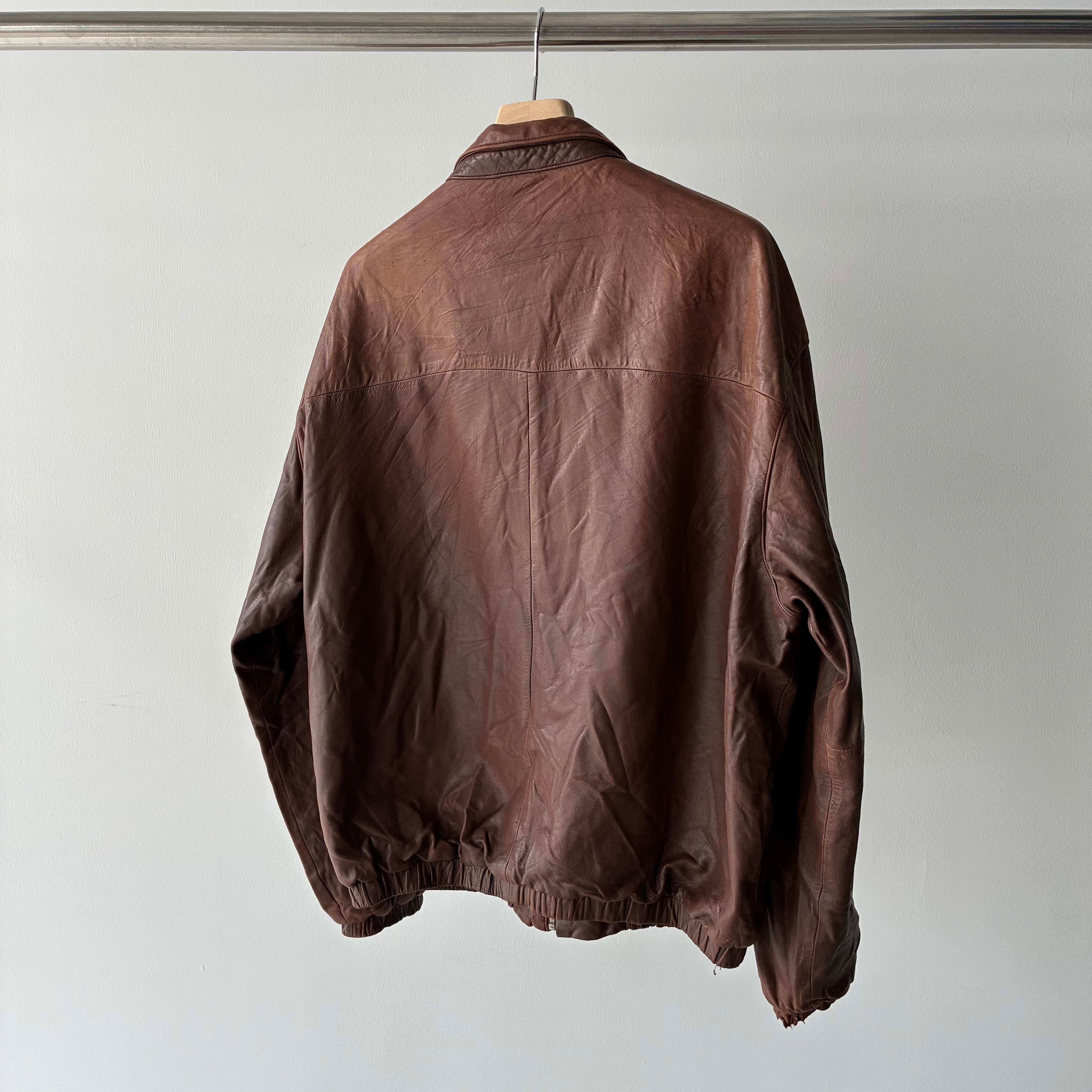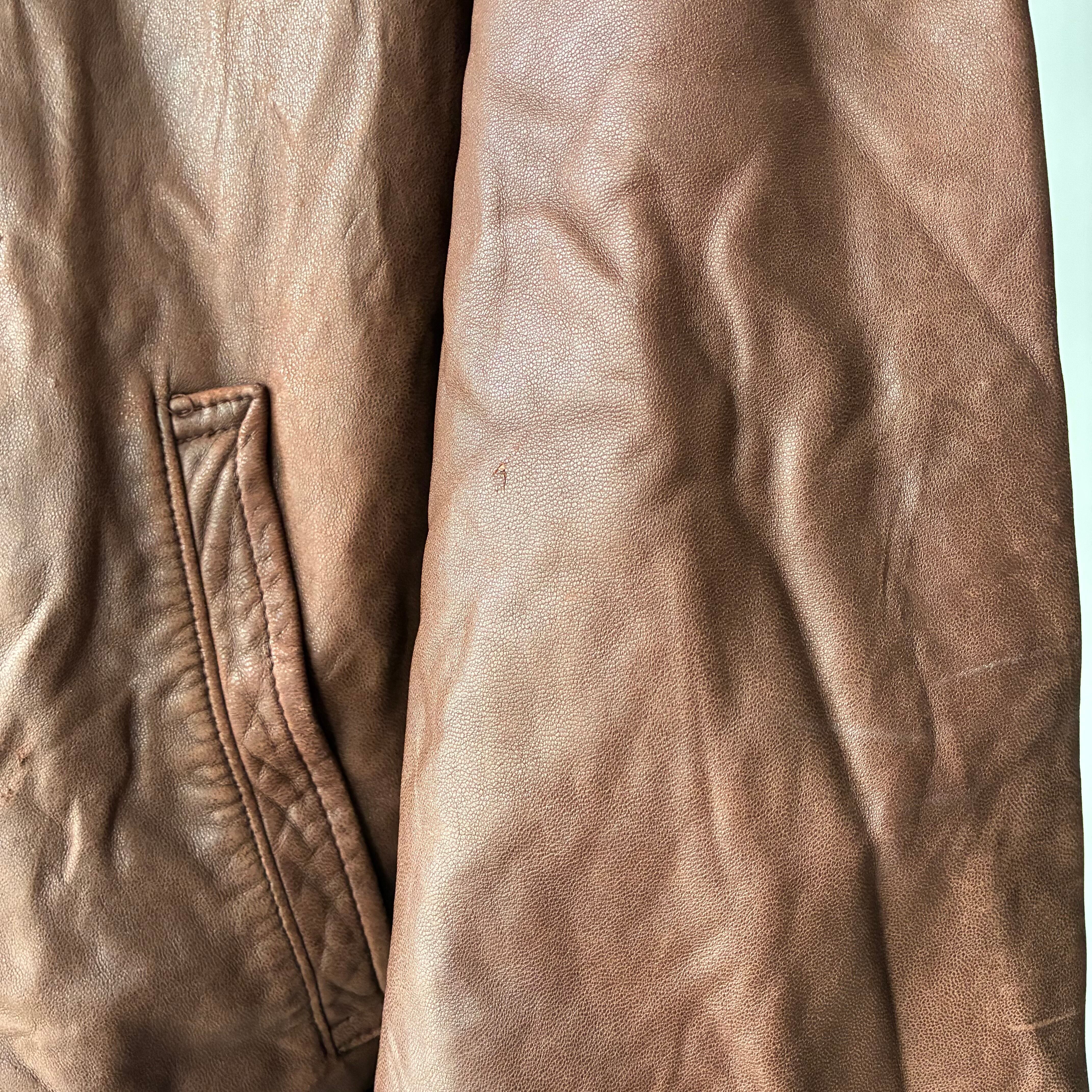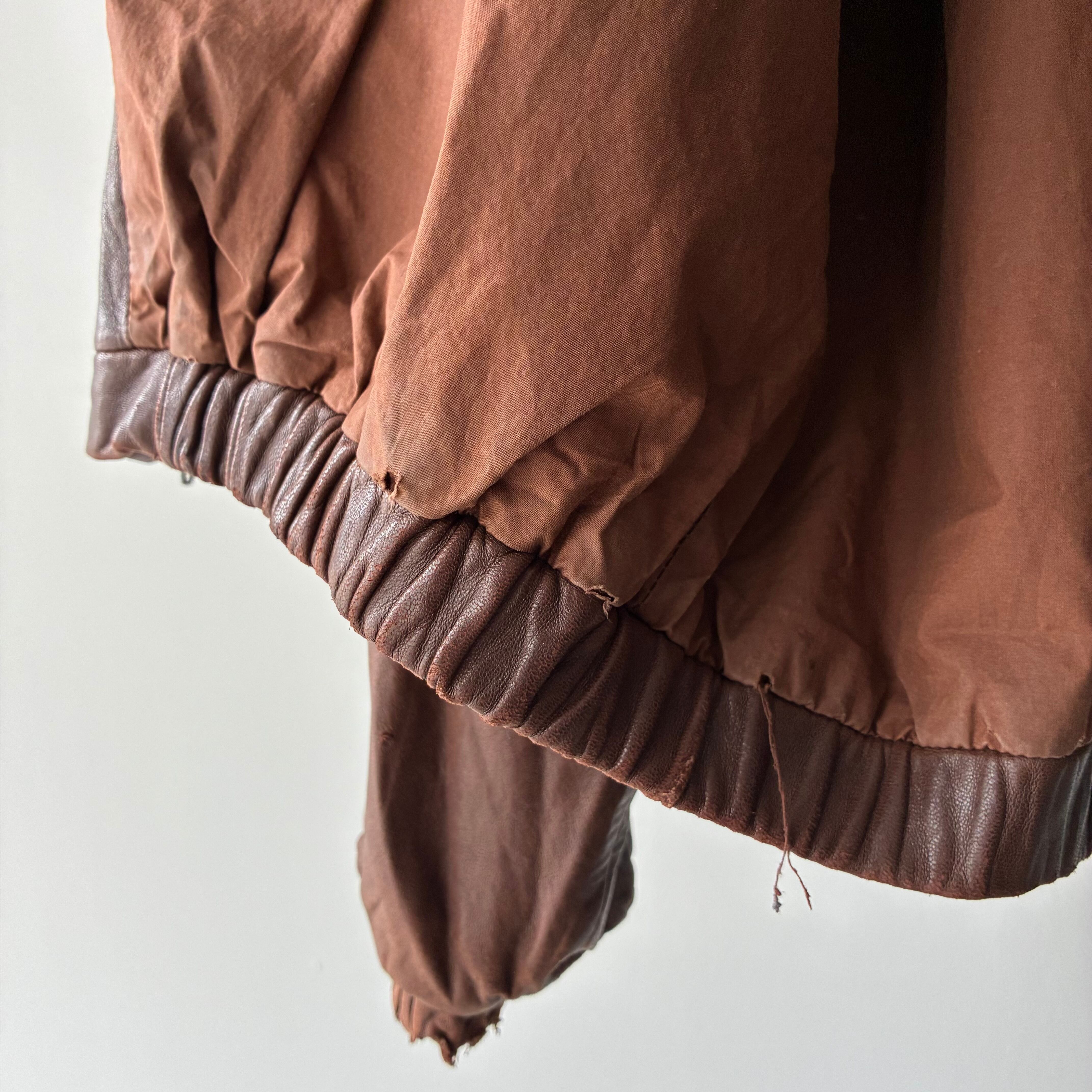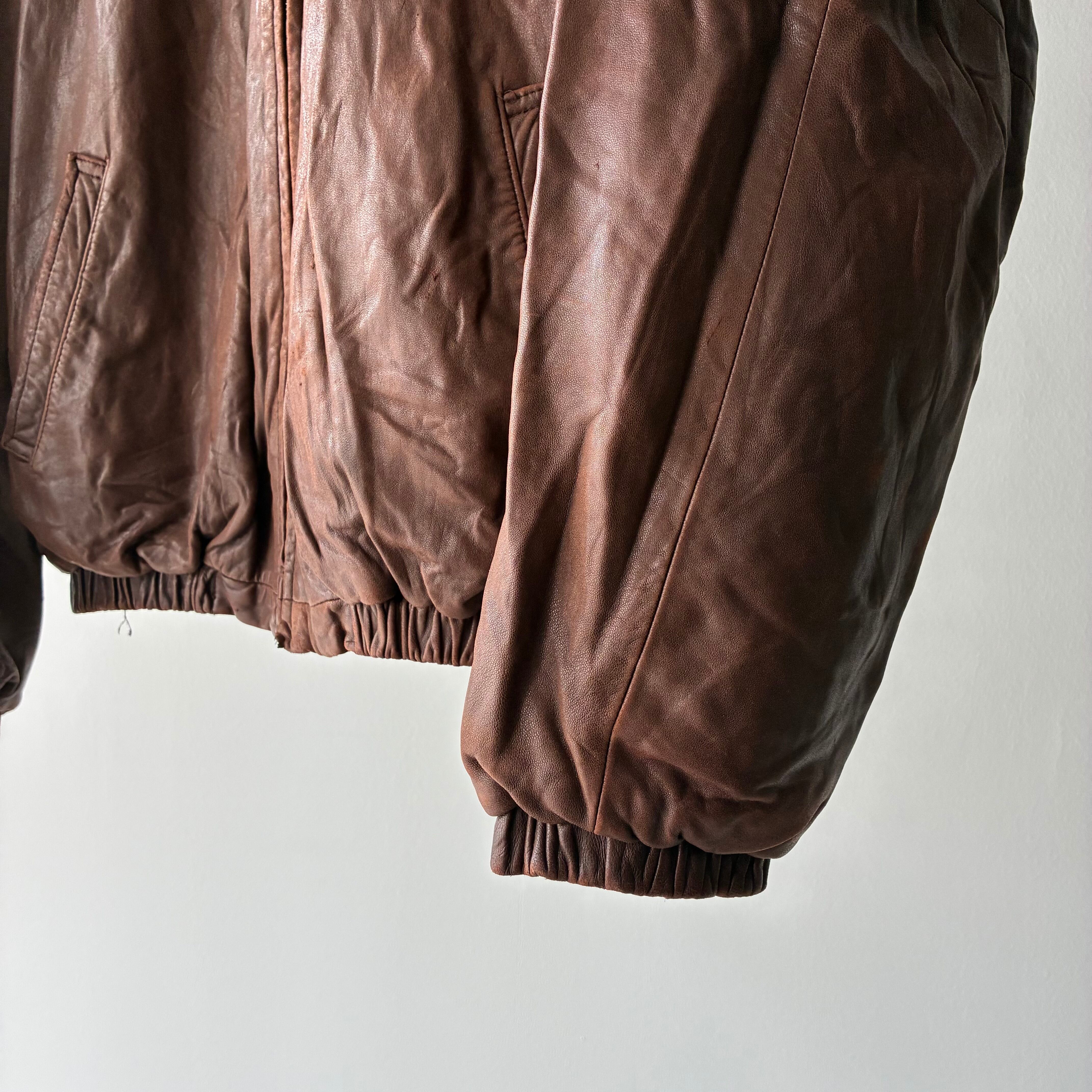 袖リブ・フロントジッパー下部付近のレザー部分にダメージ